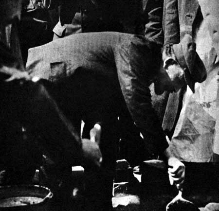 V. I. Lenin places the foundation stone for a monument to K. Marx, in Teatralnaya Square (now Sverdlov Square). Moscow. May 1 1920