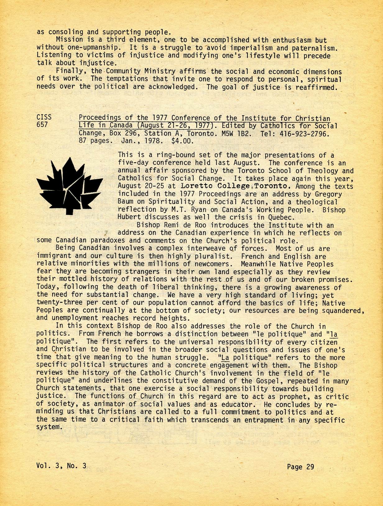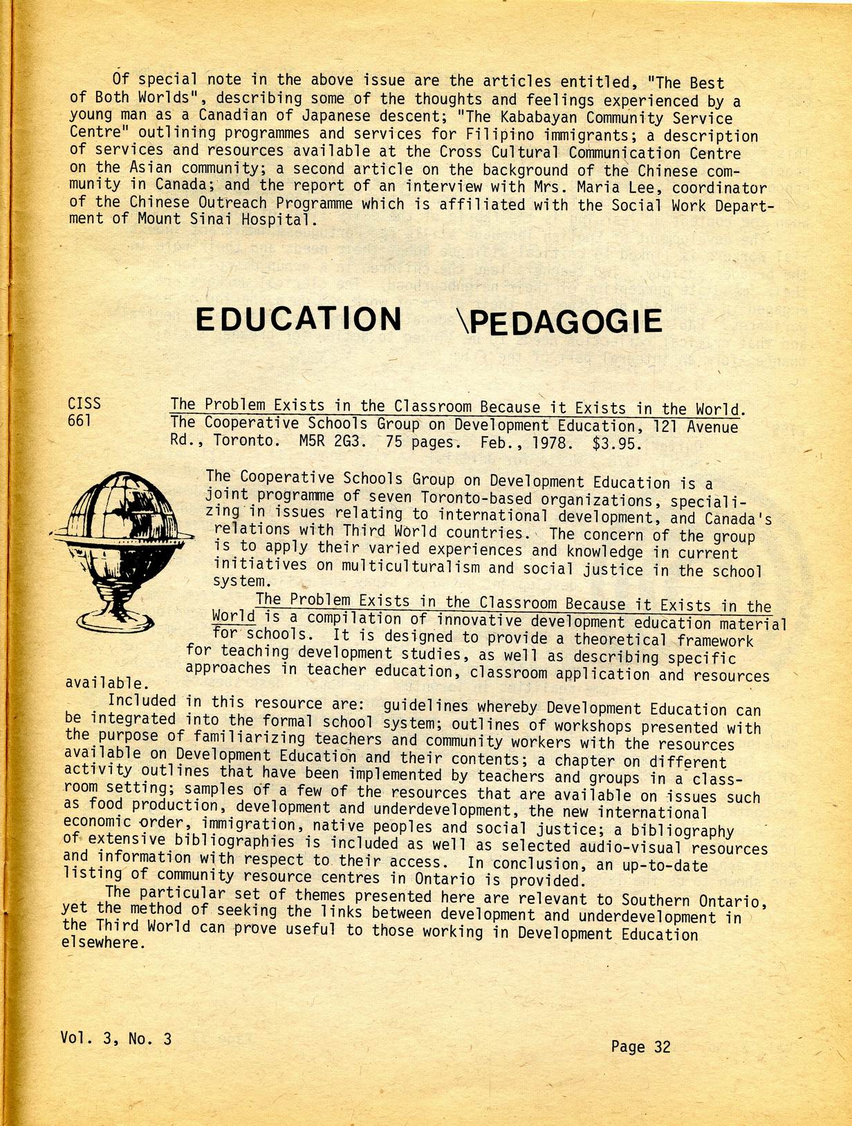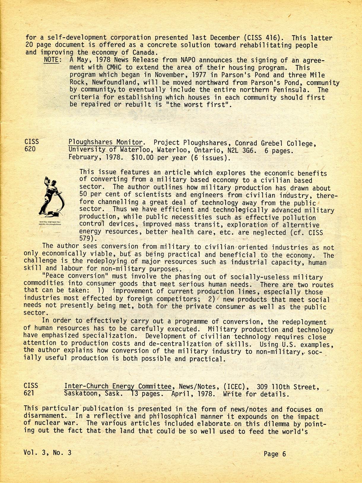 Canadian Information Sharing Service - Volume 3, Number 3 - June 1978