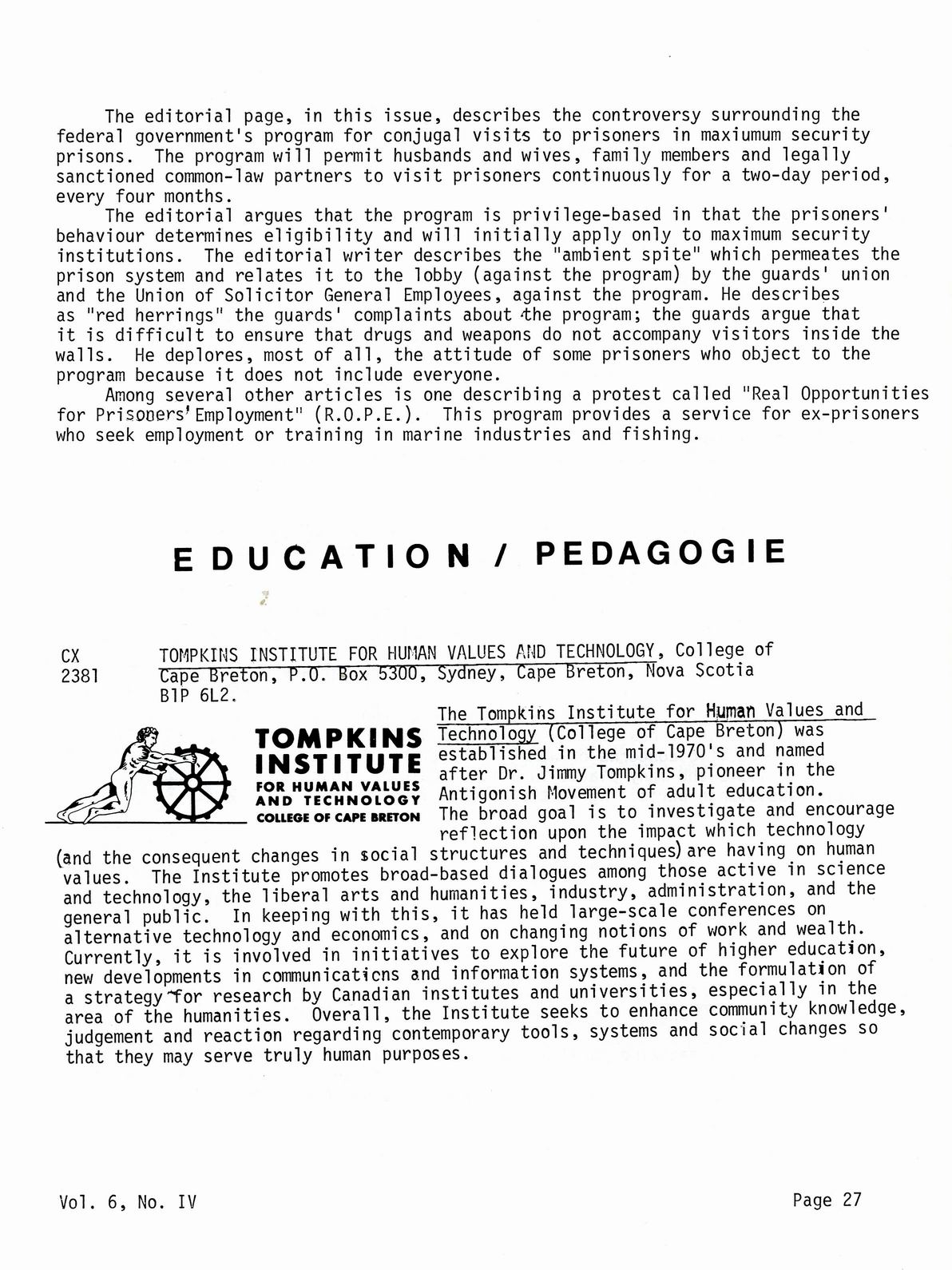 Connexions - Volume 6, Number 4 - November 1981