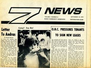 Seven News (7 News) was a community-based newspaper published in Toronto's Ward 7. Seven News was published bi-weekly by the Ward Seven Newspaper Organization from 1970 to 1985. During this time, Ward 7 covered the area of Toronto east of downtown, from Sherbourne Street to Logan Avenue, south of Bloor-Danforth, including Don Vale, Cabbagetown, Regent Park, Riverdale, and St. Jamestown.