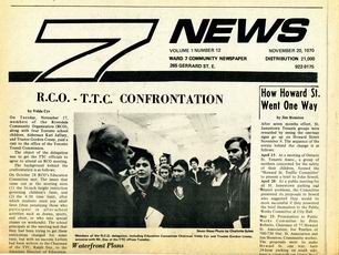 Seven News (7 News) was a community-based newspaper published in Toronto's Ward 7. Seven News was published bi-weekly by the Ward Seven Newspaper Organization from 1970 to 1985. During this time, Ward 7 covered the area of Toronto east of downtown, from Sherbourne Street to Logan Avenue, south of Bloor-Danforth, including Don Vale, Cabbagetown, Regent Park, Riverdale, and St. Jamestown.