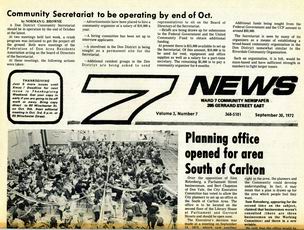 Seven News (7 News) was a community-based newspaper published in Toronto's Ward 7. Seven News was published bi-weekly by the Ward Seven Newspaper Organization from 1970 to 1985. During this time, Ward 7 covered the area of Toronto east of downtown, from Sherbourne Street to Logan Avenue, south of Bloor-Danforth, including Don Vale, Cabbagetown, Regent Park, Riverdale, and St. Jamestown.