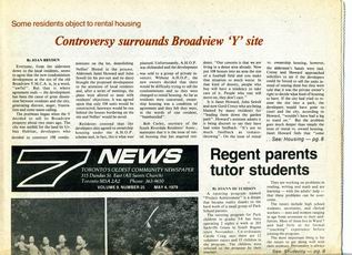 Seven News (7 News) was a community newspaper published in Toronto's Ward 7. Seven News was published bi-weekly by the Ward Seven Newspaper Organization from 1970 to 1985. During this time, Ward 7 covered the area of Toronto east of downtown, from Sherbourne Street to Logan Avenue, south of Bloor-Danforth, including Don Vale, Cabbagetown, Regent Park, Riverdale, and St. Jamestown.