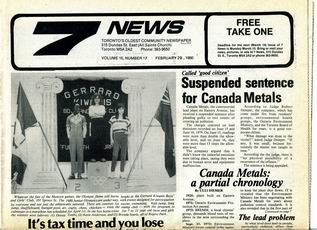 Seven News (7 News) was a community newspaper published in Toronto's Ward 7. Seven News was published bi-weekly by the Ward Seven Newspaper Organization from 1970 to 1985. During this time, Ward 7 covered the area of Toronto east of downtown, from Sherbourne Street to Logan Avenue, south of Bloor-Danforth, including Don Vale, Cabbagetown, Regent Park, Riverdale, and St. Jamestown.