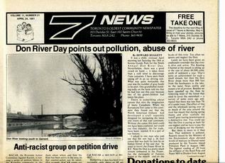 Seven News (7 News) was a community newspaper published in Toronto's Ward 7. Seven News was published bi-weekly by the Ward Seven Newspaper Organization from 1970 to 1985. During this time, Ward 7 covered the area of Toronto east of downtown, from Sherbourne Street to Logan Avenue, south of Bloor-Danforth, including Don Vale, Cabbagetown, Regent Park, Riverdale, and St. Jamestown.