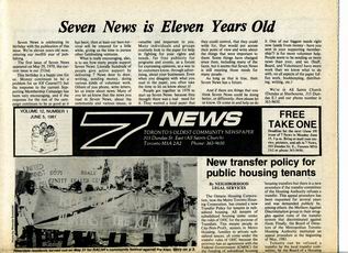 Seven News (7 News) was a community newspaper published in Toronto's Ward 7. Seven News was published bi-weekly by the Ward Seven Newspaper Organization from 1970 to 1985. During this time, Ward 7 covered the area of Toronto east of downtown, from Sherbourne Street to Logan Avenue, south of Bloor-Danforth, including Don Vale, Cabbagetown, Regent Park, Riverdale, and St. Jamestown.