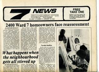 Seven News (7 News) was a community newspaper published in Toronto's Ward 7. Seven News was published bi-weekly by the Ward Seven Newspaper Organization from 1970 to 1985. During this time, Ward 7 covered the area of Toronto east of downtown, from Sherbourne Street to Logan Avenue, south of Bloor-Danforth, including Don Vale, Cabbagetown, Regent Park, Riverdale, and St. Jamestown.