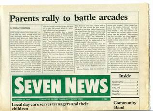 Seven News (7 News) was a community newspaper published in Toronto's Ward 7. Seven News was published bi-weekly by the Ward Seven Newspaper Organization from 1970 to 1985. During this time, Ward 7 covered the area of Toronto east of downtown, from Sherbourne Street to Logan Avenue, south of Bloor-Danforth, including Don Vale, Cabbagetown, Regent Park, Riverdale, and St. Jamestown.