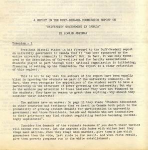 A Report on the Duff-Berdahl Commission Report on "University Government in Canada"