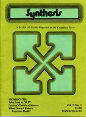 Synthesis is the journal of the Canadian News Synthesis Project. Previously known as the Canadian News Synthesis Project (1974 - 1976), Synthesis analyzes and presents current news coverage of the most important economic, political and cultural forces in Canadian Society, using major newspapers from across the country.