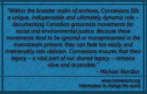 Activist Archiving in TorontoBy Michael Lithgow Canadian Alternative Media Archive November 28, 2013 About 40 people gathered in Toronto last night to discuss what many hope will grow into a movement for archiving grassroots histories. The public meeting was organized by Ulli Diemer of the Connexions Archive as a way to bring like-minded activists and scholars together to find strategies for preserving the heritage of social movements and marginalized communities in Toronto and across Canada. (Check out #Connexions for the twitter feed from the event.) The meeting was held at the Beit Zatoun House, a community centre that promotes arts and culture exploring issues of social justice and human rights. There was an exhibition of materials from the Connexions Archive in the gallery space where the meeting was held, a collection of magazine covers from grassroots publications dating back to the early 1970s. Connexions describes their archive (gathered over a period of more than 40 years) as a “living archive” which emphasizes the importance of encouraging public access and interaction with their archived materials. Invited speakers included Dennis Findlay and Helen Lenskyj of the Canadian Lesbian and Gay Archives (CLGA) who told the remarkable story of what is apparently the largest gay and lesbian archive in the world. The CLGA was started independently in 1973, and only recently secured a permanent home in a city-owned house located near downtown Toronto. The archive also hosts a public gallery where artifacts from the archive are exhibited to encourage public interest and interaction with the collection. (The new space in fact houses only 25% of the CLGA collection; storage space remains an ongoing concern.) Another speaker was Natalie Zemon Davis, Professor of History Emeritus, Princeton University – an internationally recognized historian of subaltern histories from the 16th, 17th and 18th centuries. Davis’ work has focused mostly on women, peasants and slaves – oppressed communities whose traces in history are hard to find and seldom retold. Not only do the persecuted have limited time, resources and wherewithal to record their histories and experiences in any organized way, but institutional archives – if they have any materials at all relevant to subaltern histories – most often do not catalogue and index them in terms of their subaltern status, thus making even materials that have been preserved hard to locate. Davis talked about the importance of both private archives and archives dedicated to marginalized or subaltern histories for the work of historians – family archives, private collections, and initiatives like Connexions – materials that if not informally saved would otherwise be lost. She described three such collections that have grown to international prominence: (1) the Schomburg Collection in the New York Public Library, the largest Black Culture archive in the world, which was started when Puerto Rican-born Black scholar and bibliophile, Arturo Alfonso Schomburg, donated his private collection of books, manuscripts, etchings, paintings and pamphlets to the library. (2) the Robert F. Wagner Labor Archives, at the Tamiment Library, established in 1979, to preserve the historical records of the City’s trade union movement and labor heritage. (3) the Aletta Institute for Women’s History, in Amsterdam , that holds books, magazines, archives, works of music, photographs, posters, diaries, letters, all sorts of household and personal objects relevant to women and women’s lives. Ulli Diemer from Connexions Archive spoke about the importance of activist histories. Connexions started in 1975 as an information exchange group – folks from across Canada would send in their grassroots publications and Connexions would summarize and re-distribute stories that otherwise had no circulation. At their pre-internet peak, they were circulating materials to over 2,000 subscribers. Almost by default, the organization began to amass social movement literatures. Connexions also published for a number of years a directory of activist and social justice organizations. Now, its focus is on maintaining and digitizing what is likely the largest alternative publication archive in Canada. Diemer celebrates the transition to digital technologies (the Connexions online archive receives over 75,000 visits a month), but warns against being too complacent with how well new technologies serve archiving needs. He showed the group a floppy disc, a digital cassette, and a few other older incarnations of digital storage now virtually unusable. Digital technologies help with distribution, but preservation he warned remains a difficult and costly consideration. Connexions is currently searching for a new home for its significant collection. The other key theme of the night emerged in the Q & A afterwards: what to do with the private collections that exist right now – in garages, shoeboxes, trunks in basements, personal files. By hand count, three-quarters of the attendees at the meeting had their own collections they would like to donate to a larger collection. The question is: who will take them and how to store and manage them into the future? These are questions about resources and expertise. The discussion focused on the possibility of leveraging municipal assets like schools as storage facilities, or perhaps finding local philanthropists like the Mirvish family who might have an interest in helping to preserve local history. A working group was struck to keep the conversation going. For more information or to get involved contact Ulli Diemer at connexions[at]connexions.org. Originally posted at: www.alternativearchive.org/uncategorized/activist-archiving-in-toronto Related Articles and Documents: Related topics and resources in the Connexions Subject Index History Focus page – Oral History and Memoirs Focus page – Radical & Left History Focus page <– People’s History, Memory