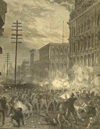 Start of the Great Railroad Strike of 1877. The strike is in response to the cutting of wages for the second time in a year by the Baltimore & Ohio Railroad (B&O). Striking workers refuse to allow any of the stock to roll until this second wage cut is revoked. The governor sends in state militia units to restore train service, but the soldiers refuse to use force against the strikers and the governor calls for federal troops.