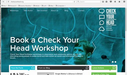 Purpose: Check Your Head is an education program geared at educating high school students on globalization and social and global justice. The program brings together youth and university students to initate environmentally sustainable, peace centred activities that promote global justice. The long term goal is and educated, empowered and engaged youth that will grow to become responsible, decision making community members.