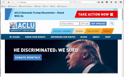Purpose: Works to defend and preserve the individual rights and liberties that the Constitution and laws of the United States guarantee everyone in this country.