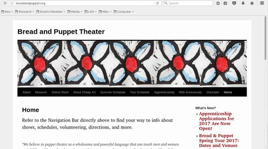 E-Mail: breadpup@together.net Website: http://breadandpuppet.org